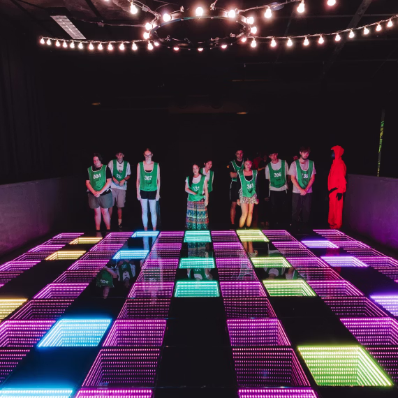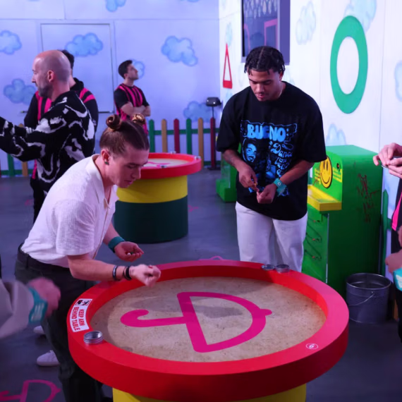 「渋谷リアル・イカゲーム」では、Netflixシリーズ「イカゲーム」の世界に入り込んだような没入感を得ることができます。参加者は自身の顔をスキャンしてプレイヤーとして登録し、約60分間「だるまさんがころんだ」「綱引き」「ビー玉遊び」など合計6つのゲームを経て、優勝者1名が選ばれます。作品を見ていない方もお楽しみいただけます。